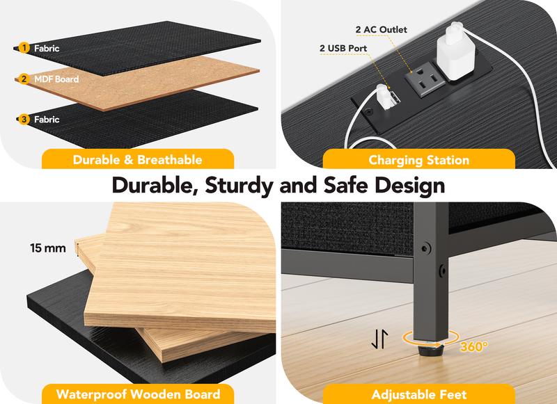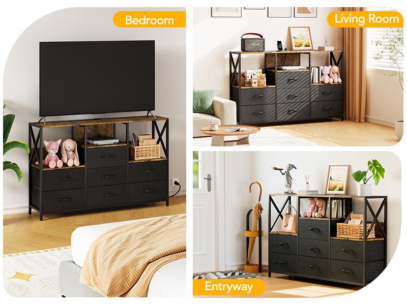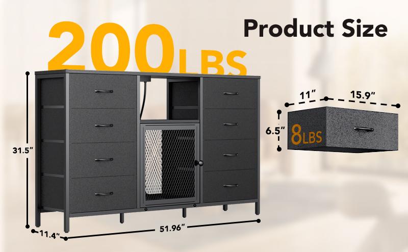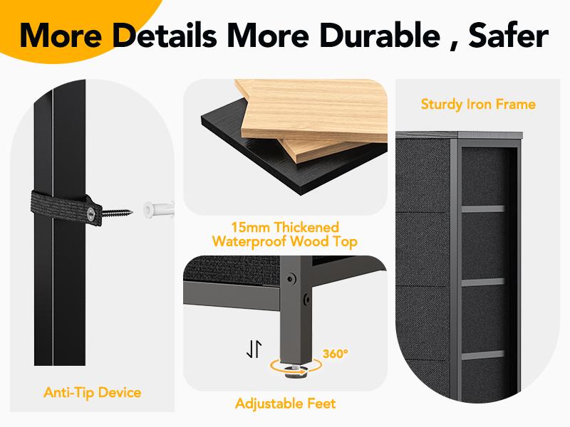 Sturdy, Stable and Safe: Made of durable wooden top, sturdy metal frame and breathable fabric drawers. The top wooden open shelf can support up to 220 pounds, and each drawer has a maximum load of 8 pounds. 8 large drawers are perfect for sorting and organizing your clothes, blankets, scarves, socks, etc.